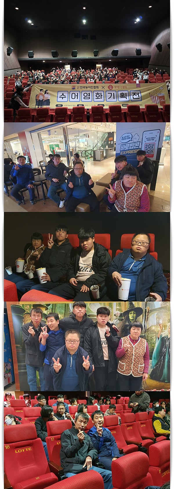 수어영화 관람(롯데시네마) 페이지 정보 작성자 관리자 작성일25-12-08 11:46 조회16회 댓글0건 이전글 다음글 목록 본문 11월 11일 광주 롯데백화점에 위치한 롯데시네마에서 수어영화 관람을 다녀왔습니다. 광주지역 장애인들과 함께 즐겁게 영화관람하고 왔습니다.^^ 이전글 다음글 목록