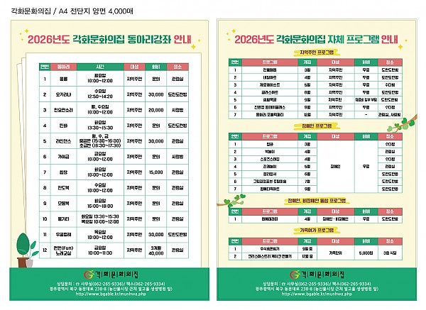26년도 동아리활동 및 프로그램 안내 페이지 정보 작성자 정관용 작성일26-01-16 17:02 조회123회 댓글0건 이전글 다음글 목록 본문 26년도 동아리 전체 활동 안내 및 프로그램 안내합니다. 이전글 다음글 목록
