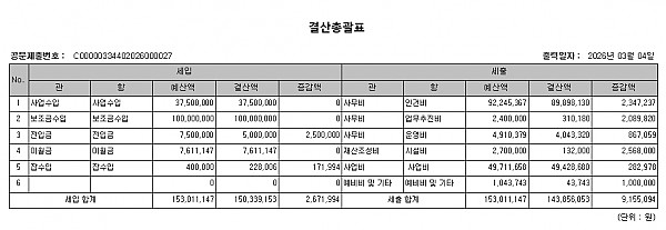 2. 공고사항 : 2025년 각화문화의집 세입·세출 결산
